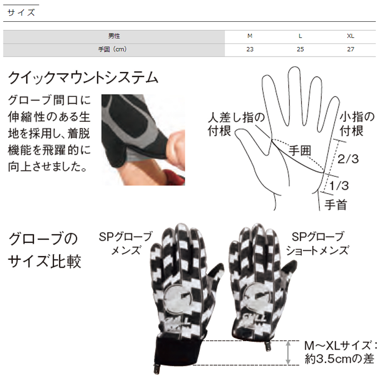 ◆サイズ目安(手囲):M(23cm)、L(25cm)、XL(27cm)