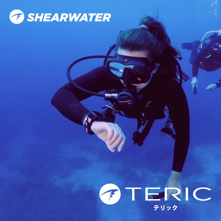 TECダイビングで絶大な信頼の「Shearwater シェアウォーター」より、日常の時計としても活躍し、TECダイビングまでカバーできるコンパクトなカラー液晶ダイビングコンピューター「TERIC テリック」が発売。
