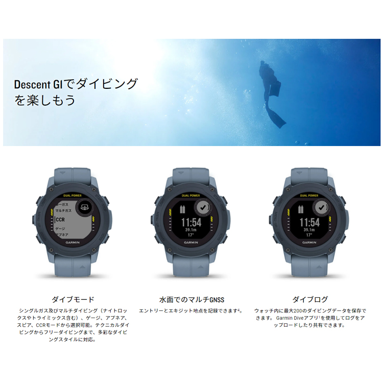 [ GARMIN ] ガーミン Descent G1 Dual Power GPS内蔵 充電式 / ソーラー充電 010-02604