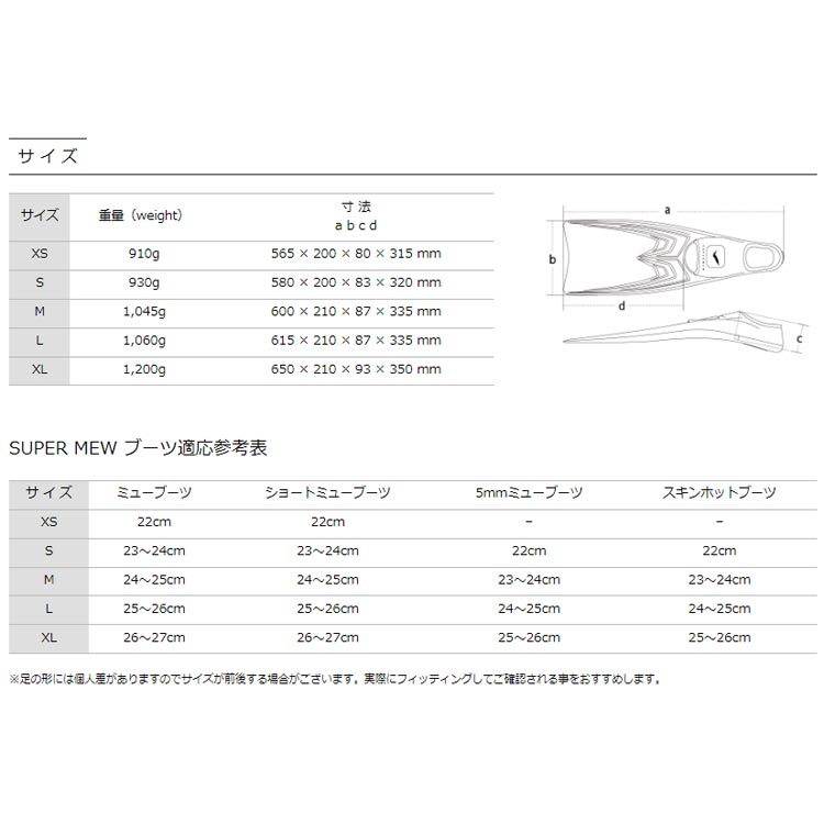 ◆XSサイズ:22cm/全長565mm/フィン先幅200mm/重量910g