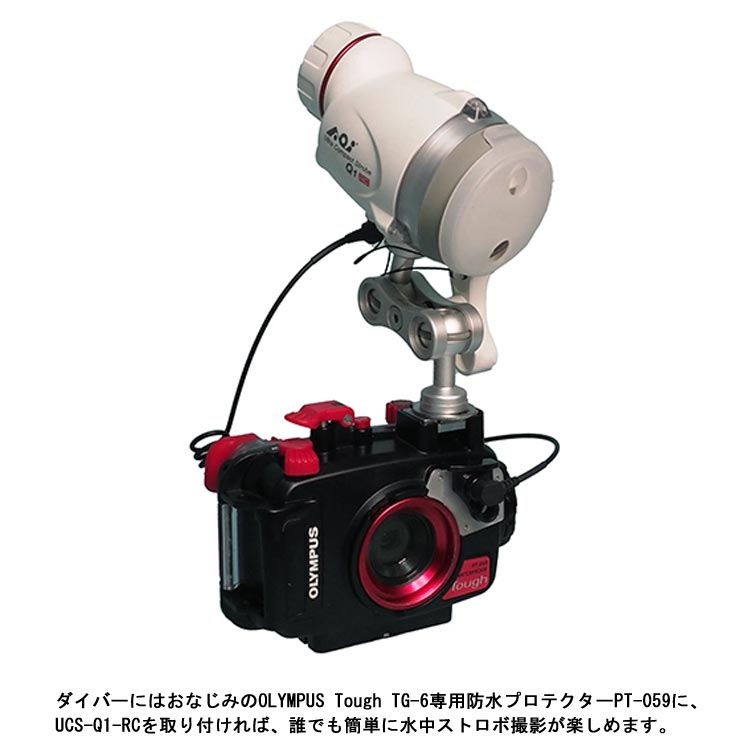 ダイバーにはおなじみのOLYMPUS Tough TG-6専用防水プロテクターPT-059に、UCS-Q1-RCを取り付ければ、誰でも簡単に水中ストロボ撮影が楽しめます。