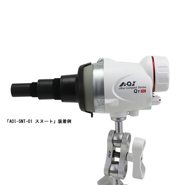 UCS-Q1-RCには、専用のスヌートが用意されています。SNT-01スヌ ー ト(SNT-01)を取り付けると、 周囲に当たる光をカットし、 被写体をピンポイントで照射することが可能。被写体を浮き立たせる独特の表現ができます。