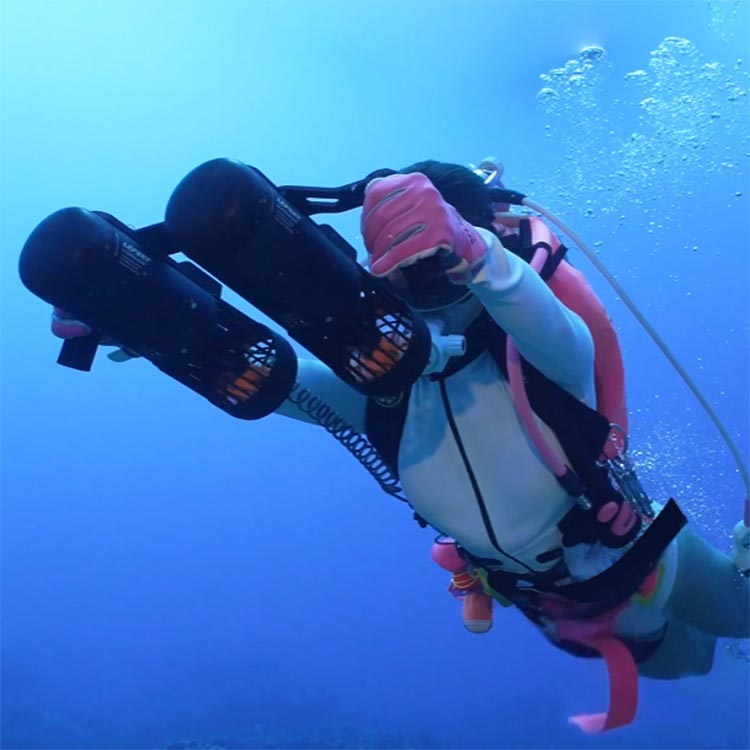 デュアルモーターは同時に動作するため、より多くの体力と酸素を節約でき、より多くのパワーとより良い体験をすべてのダイバーに提供します。