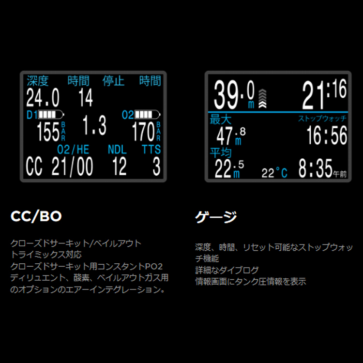 ◆ゲージ ストップウォッチおよびダイブログ機能付きボトムタイマー