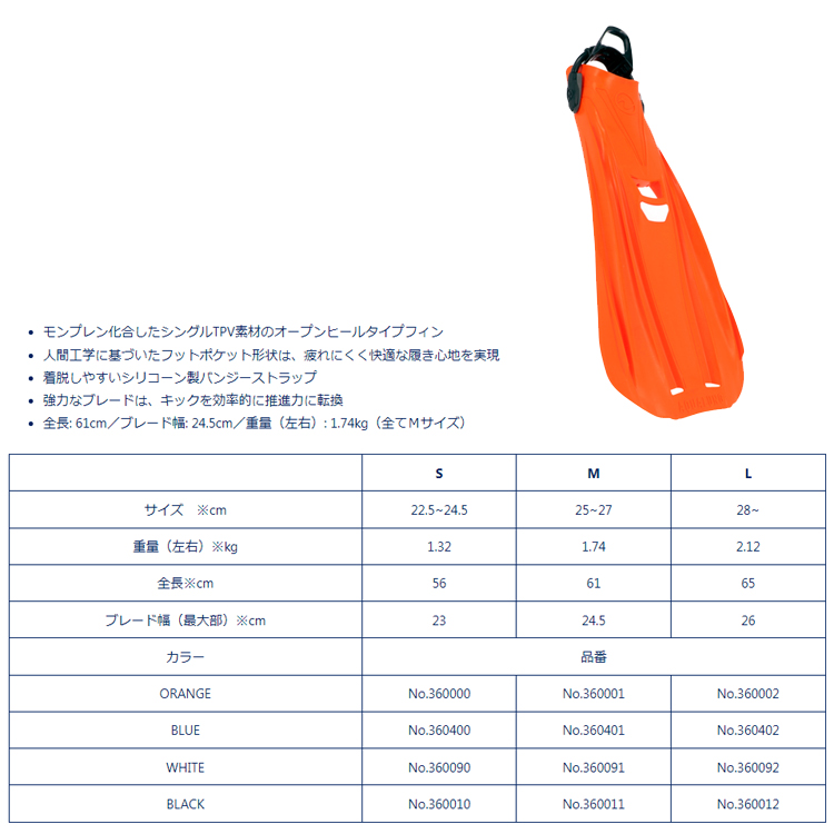 ◆モンプレン化合したシングルTPV素材のオープンヒールタイプフィン