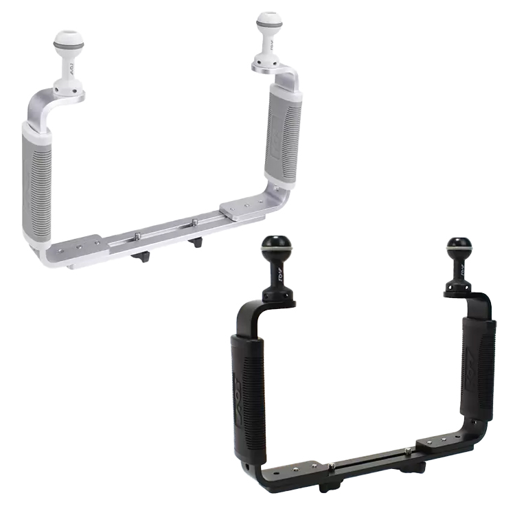 2灯ライティング用のグリップ&トレーです。220mmのトレーとハンドグリップの組み合わせで、ハウジングのサイズに合わせて、260〜300mmまで幅の調整ができます。サイズが合えば、AOI製以外のハウジングでも使用可能です。
