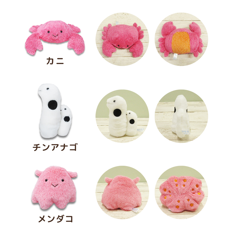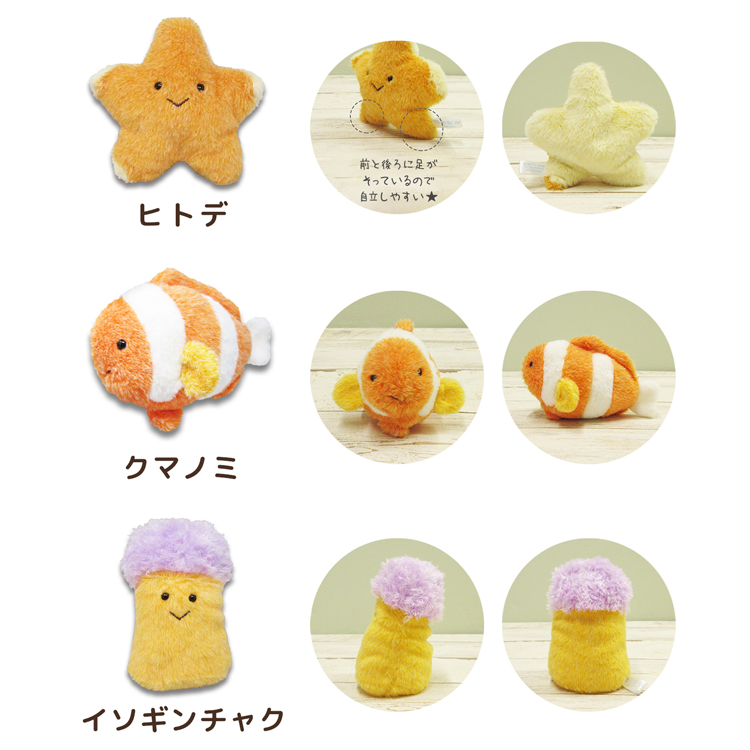 海の生き物たち「海中散歩」シリーズの、さらさらシャーベット生地を使用した触り心地抜群のぬいぐるみです。パステル調の色合いがとっても可愛い!ちょこんと置くことが出来る手乗りサイズです。