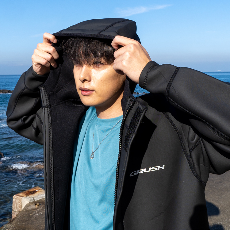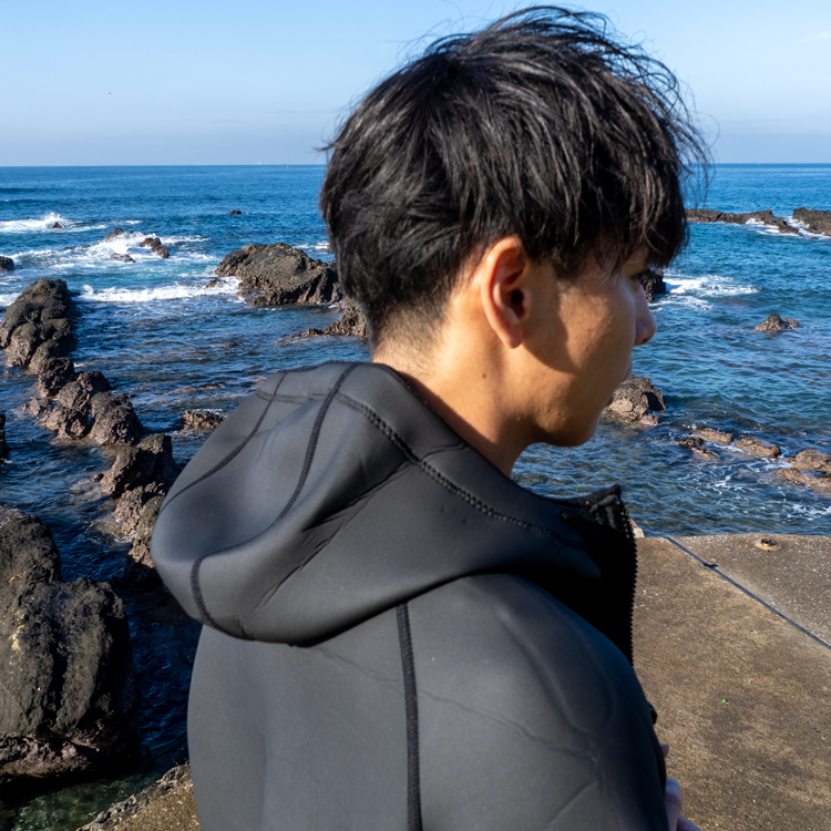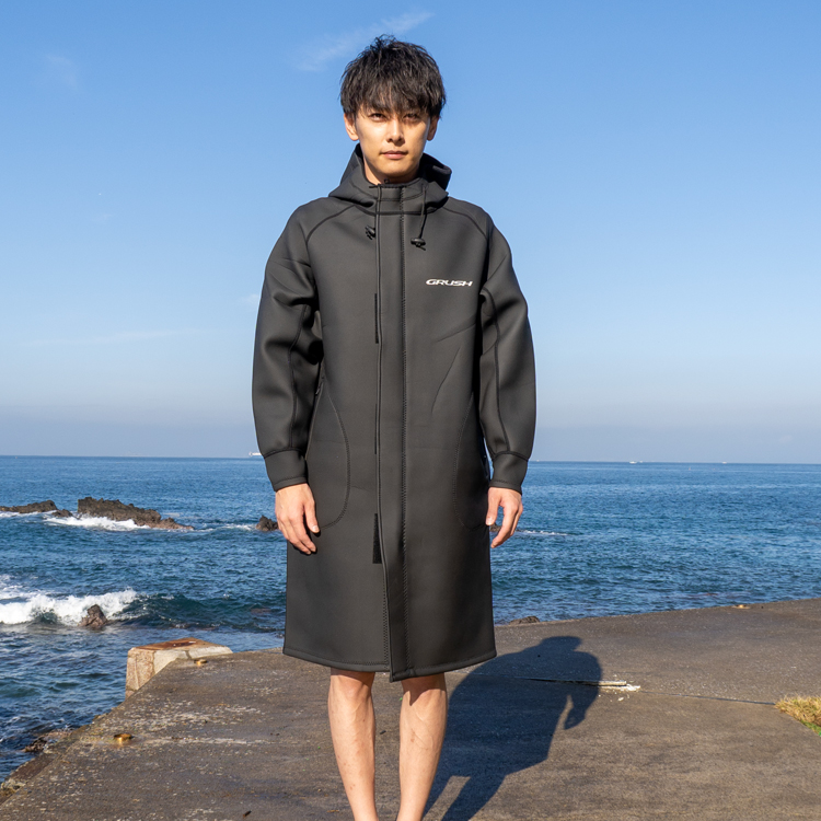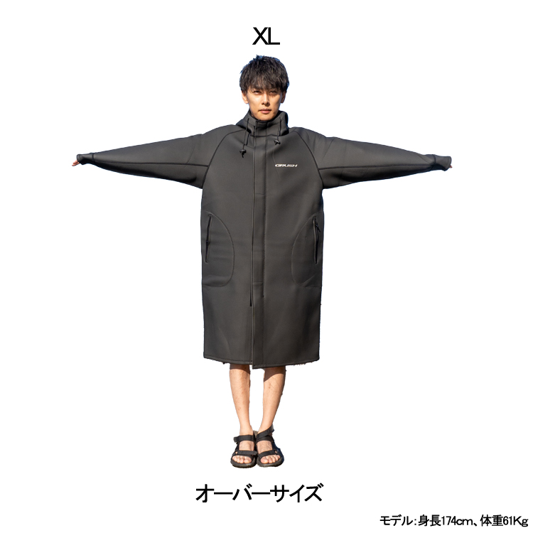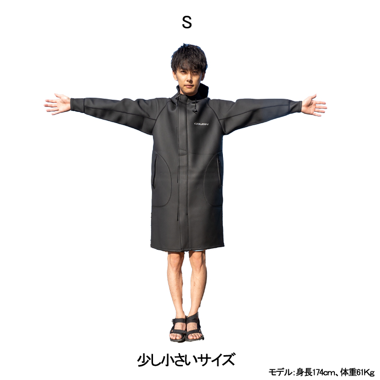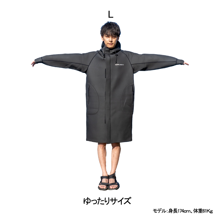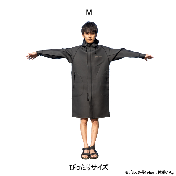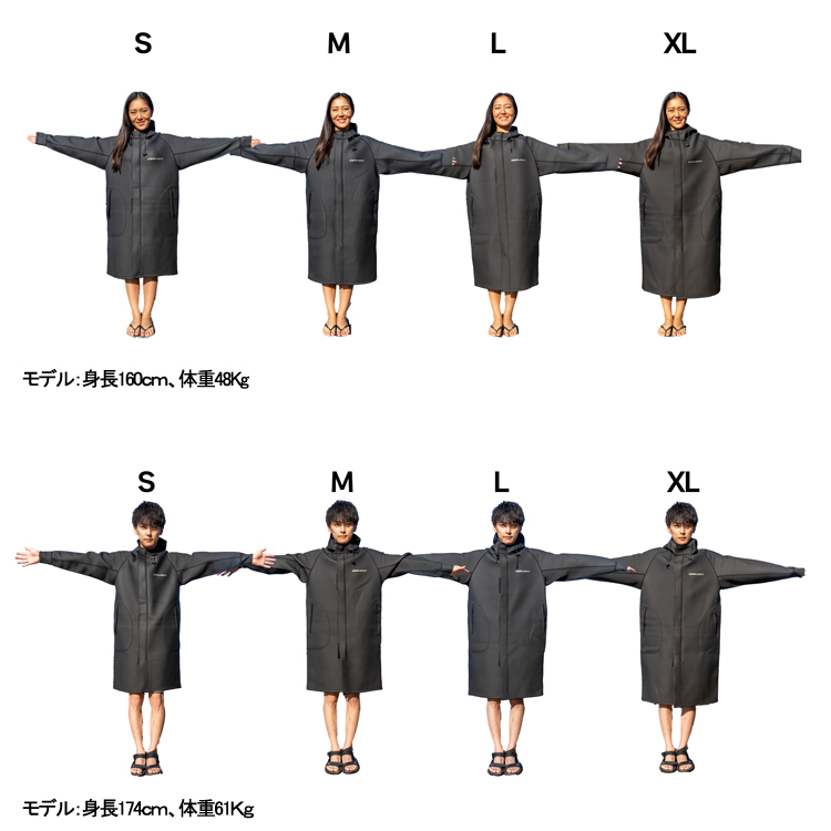 ウェットスーツの上から羽織る場合は、1サイズ上のゆったりめのサイズを選ぶことをおすすめします。