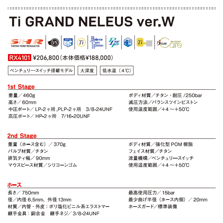◆1st ステージ、2nd ステージともにチタン製。耐食性に優れます
