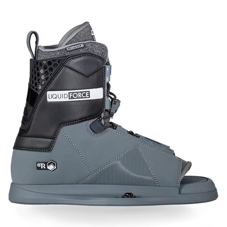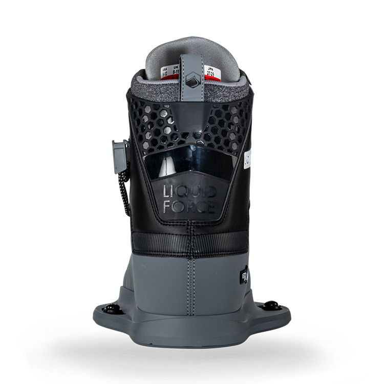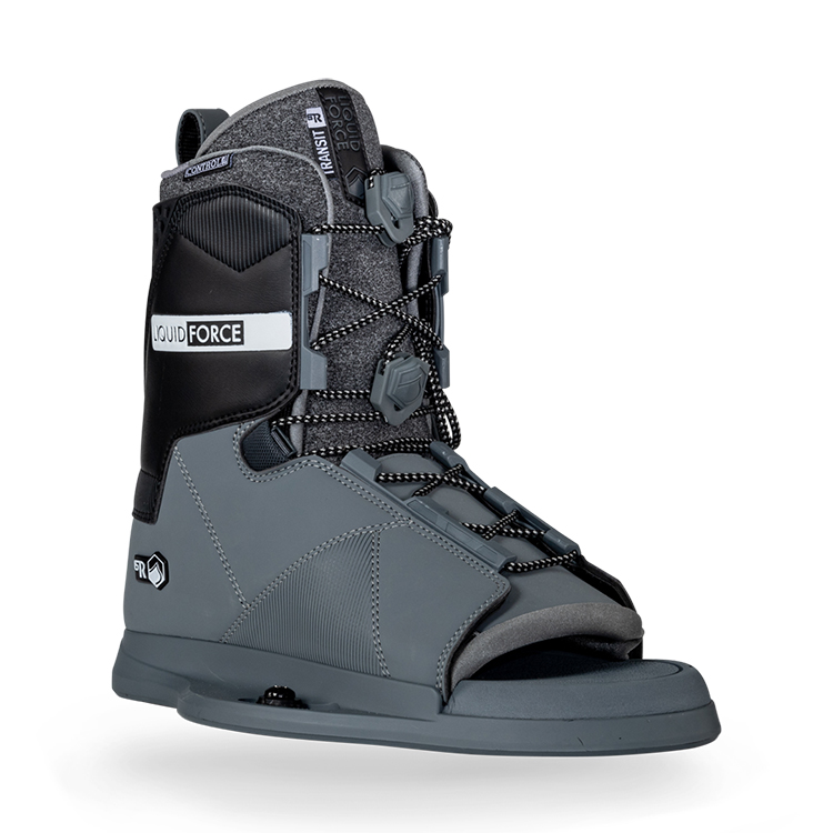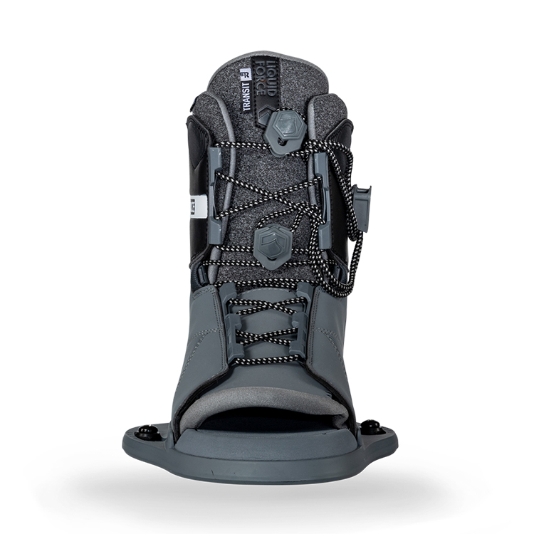 リキッドフォースの2024年モデルウエイクボード用ビンディング[TRANSIT(トランジット)]。オープントゥ(つま先の開いた)タイプのブーツ。
