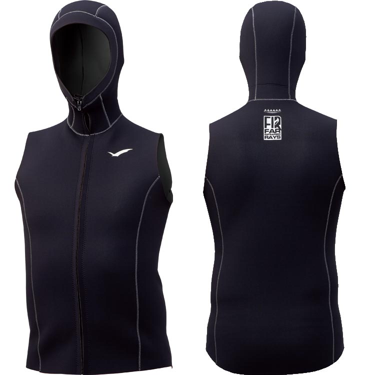 水温が低いシーズンの防寒に最適なFIR生地を内側に採用し、運動性にも考慮しながら、着脱性にも優れフロントファスナー仕様。スクーバダイビング・スキンダイビングなど様々なマリンスポーツでスーツのインナーやアウターにも活躍できます。