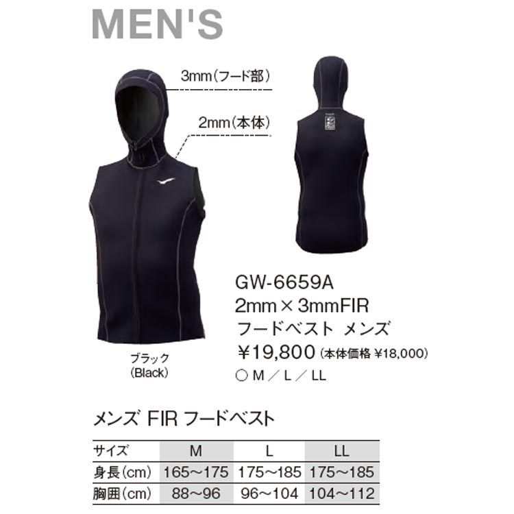 [ GULL ] 2mm×3mmFIRフードベスト メンズ GW-6659 FIR FOOD VEST MEN'S GW6659