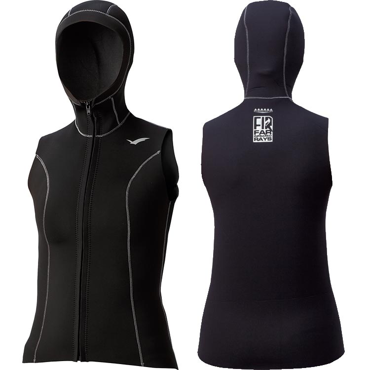 水温が低いシーズンの防寒に最適なFIR生地を内側に採用し、運動性にも考慮しながら、着脱性にも優れフロントファスナー仕様。スクーバダイビング・スキンダイビングなど様々なマリンスポーツでスーツのインナーやアウターにも活躍できます。