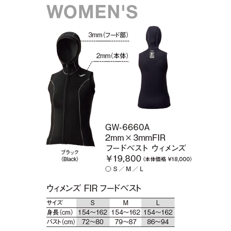 [ GULL ] 2mm×3mmFIRフードベスト レディース GW-6660 FIR FOOD VEST WOMEN'S GW6660