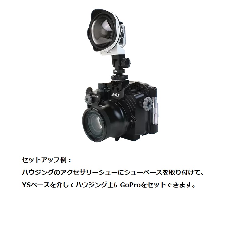 QRS-02-MB1Pを YS仕様に変換するベース。ハンドグリップ部分を外して取り付けると、UWL-03を付けたGoProを