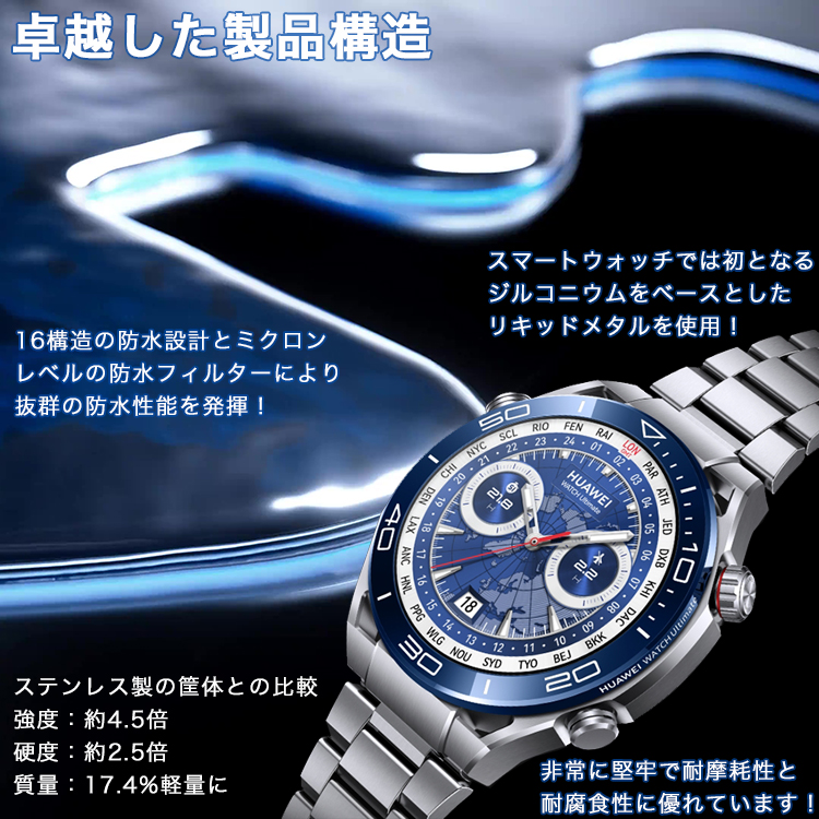 スマートウォッチでは初となるジルコニウムをベースとしたリキッドメタルを使用しています。