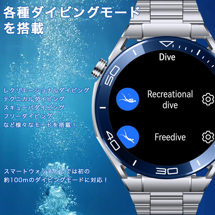 スマートウォッチタイプのダイビングコンピュータが登場!さらにダイビングもちろん、ハイキングやクロスカントリー、ランニング、登山、ゴルフなど20種類以上のプロスポーツモードと 100種類以上のカスタムワークアウトモードに対応!