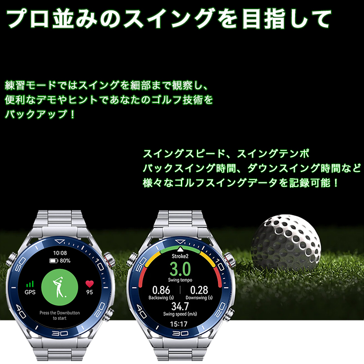 ディスプレイ:1.5インチ LTPO AMOLED 466x466ピクセル