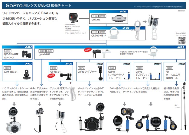 グリップトレーセットを介して、水中ライトとの組み合わせもできます。