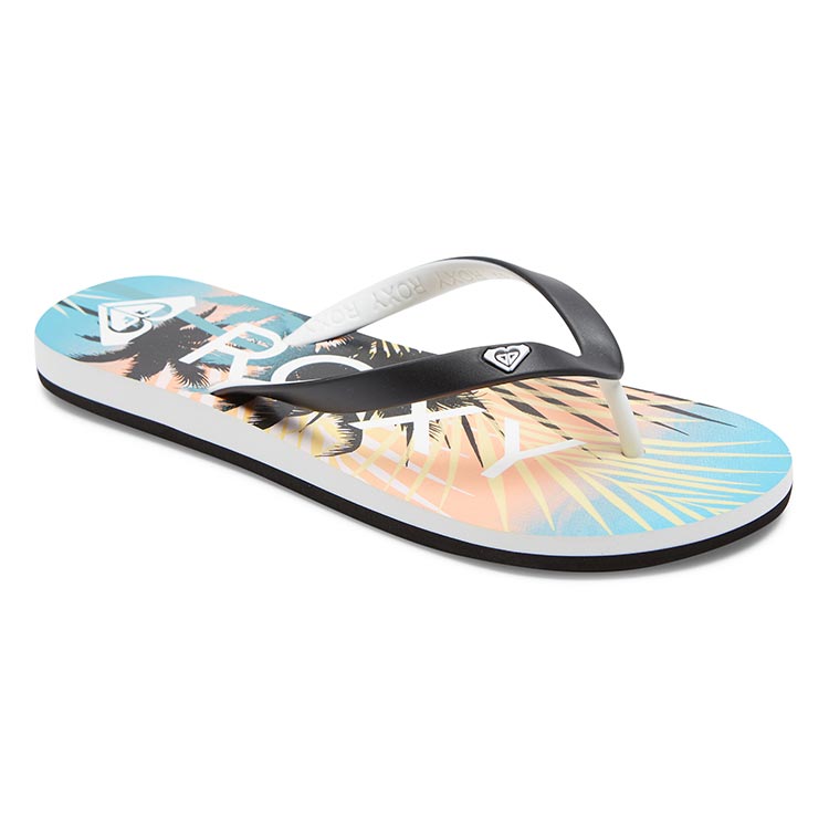 夏らしさいっぱいのシーズナルのボタニカル柄ビーチサンダル。フットベッドの上部は柔らかく、下部は堅めの固さの違う2種類のクッションを使ったことで、履き心地が良く歩きやすいビーチサンダルに。PVCフリー、エココンシャスなアイテムです。少し太めのストラップにはロゴマークが付いています。