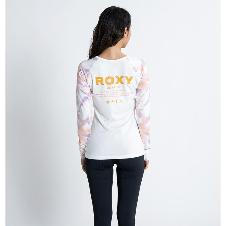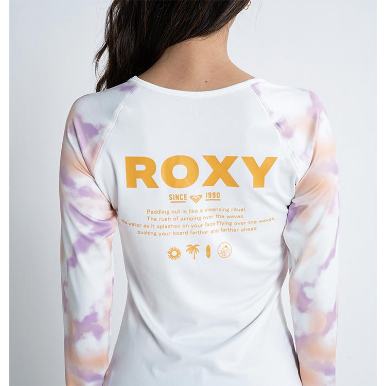 やわらかい生地を使用した、ラッシュガードの新デザインが登場。クルーネックのカバーアップラッシュガードは、タイトなシルエットですっきり見えを叶えます。ラグランスリーブにタイダイプリントを施しました。UVカット機能を備え、さらにサムホール付きロングスリーブなのでカバー力が高いのも魅力。胸元とバックにはROXYのロゴをあしらいました。※このアイテムは日本サイズです。