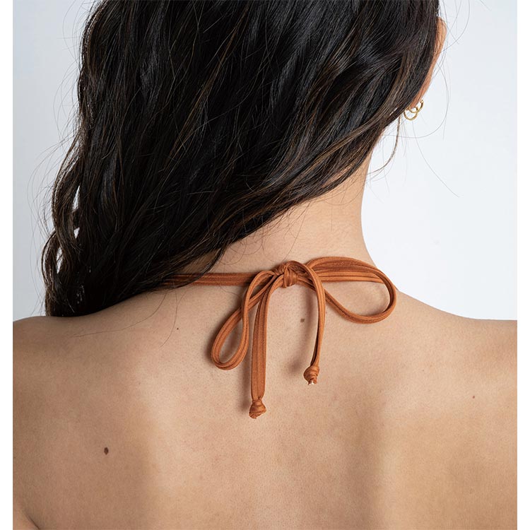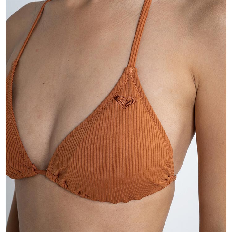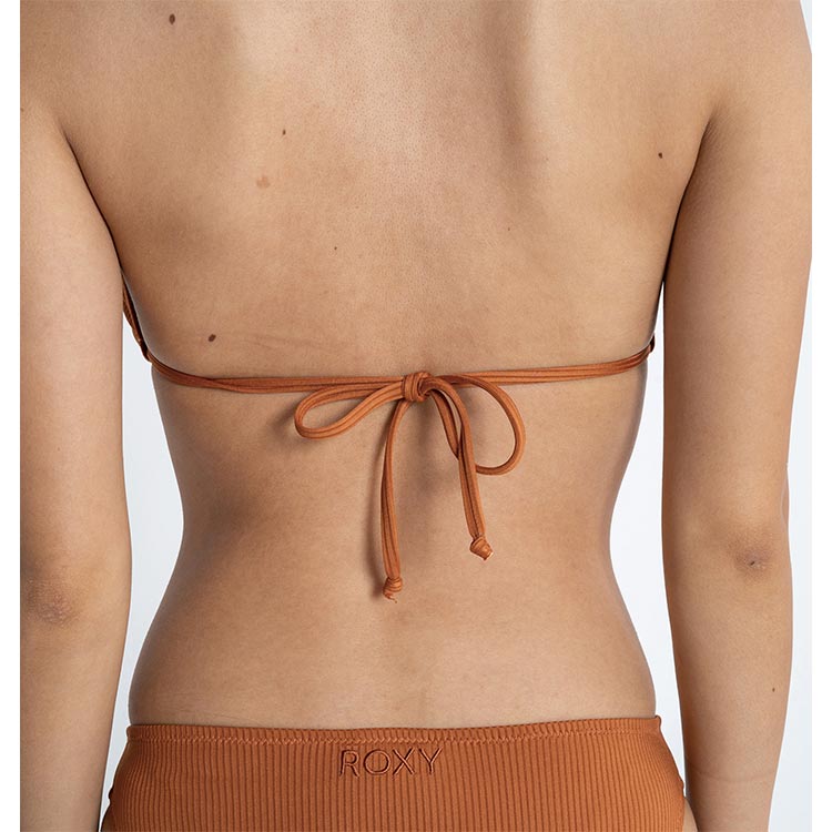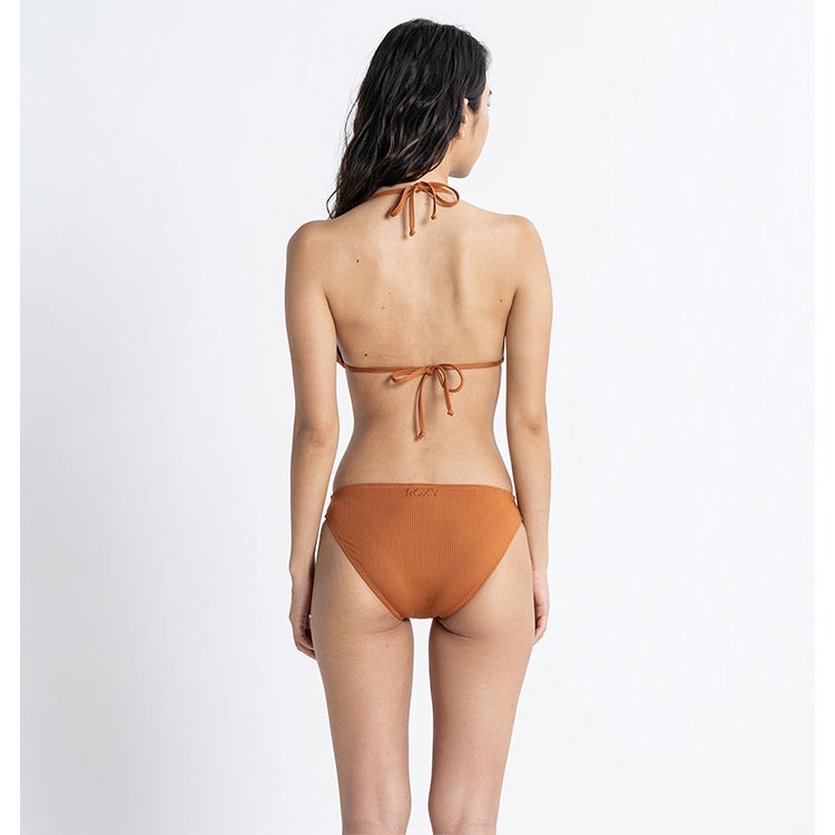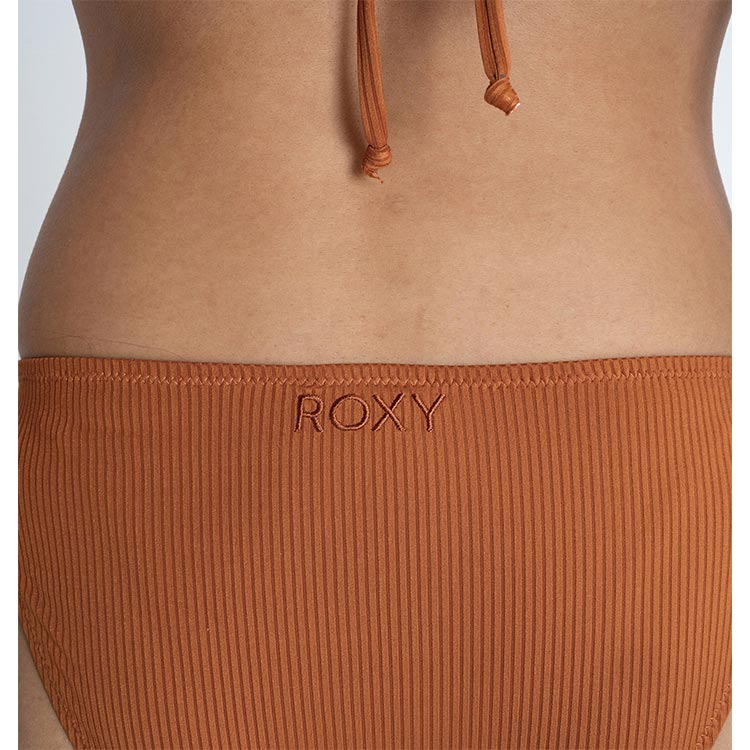 凹凸のあるリブ素材が印象的な、ビキニタイプのスイムウェア。シンプルな三角ブラは大人っぽい雰囲気に着こなせます。締め付けが少ないので、タイトなスイムウェアが苦手な人にもおすすめです。ブラトップの片側とボトムのバックにはROXYのロゴを生地と同色の刺繍であしらいました。※このアイテムは日本サイズです。