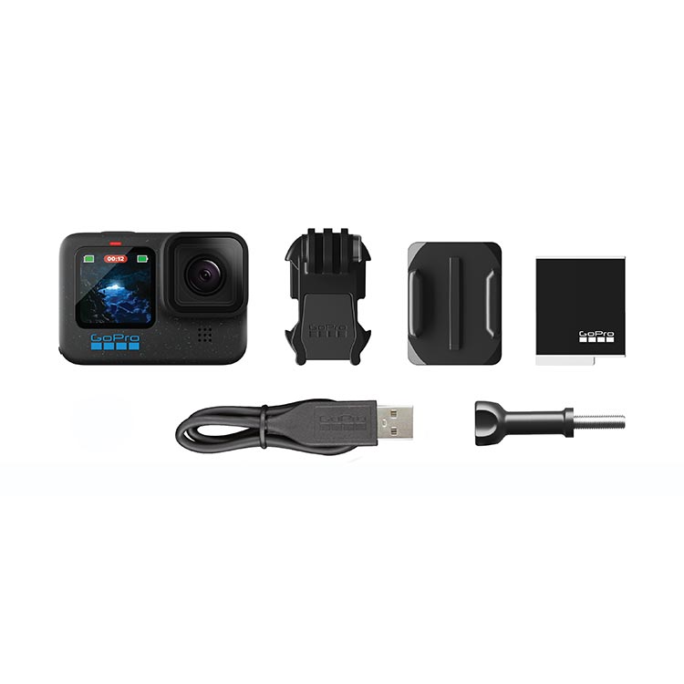 ◆HERO12 Blackカメラ、Enduroリチャージャブルバッテリー、粘着性ベースマウント (曲面)、マウント用バックル+サムスクリュー、USB-Cケーブルが付属