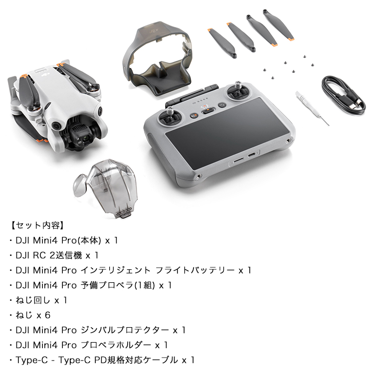 初めての方でも扱いやすい高性能ドローンDJI Mini4 Proと5.5インチ1920x1080内蔵フルHDディスプレイ搭載のRC 2送信機が付属したセットになります。【商品説明】