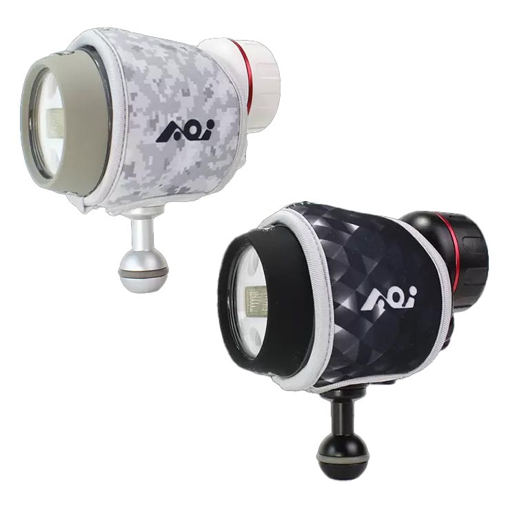 ホワイトとブラックの2色展開するストロボに合わせたリバーシブルのデザインになりました。ストロボカバーは本体に傷がついたり、汚れるのを防ぎます。また、6.5mmと厚手のネオプレン生地を使用しているのでストロボの水中重量を軽減。水中重量が軽減されて取り回ししやすくなります。