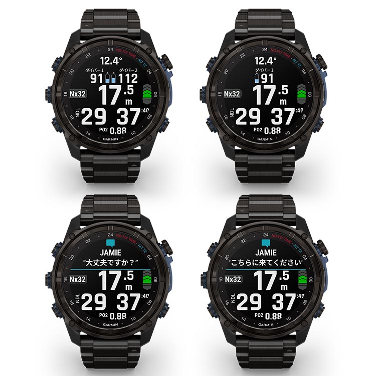 ◆ダイブ中の警告アラート:浮上速度、PO2、CNS/OTU、NDL、ガス切り替えを警告するサウンドとバイブレーションのアラート。ダイビングモードごとにオン/オフ設定可能な深度またはタイムに基づくサウンドとバイブレーションのアラート。(最大40件)
