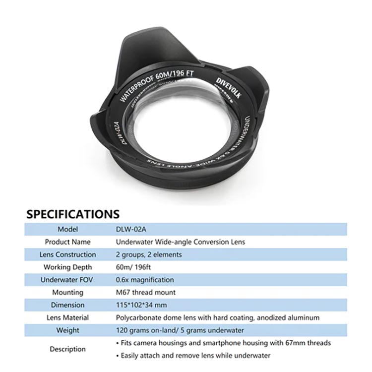 [ DIVEVOLK ] Underwater Wide-angle Conversion Lens X0.6
