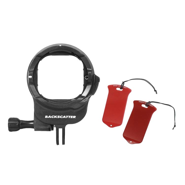 青みがかってしまうGoProの水中映像を色鮮やかにする専用補正フィルターを、ワンタッチで着脱できるUWL-03専用のマウントベースです。フィルターはDIVE(水深5〜20mが目安)と、より深いDEEP(水深20m以深が目安)の2タイプがあり、着脱はスライド式でワンタッチ。水面下や太陽光がたっぷりの浅い水深ではフィルターはなしで、青みがかる水深ではフィルターをセットして撮影することができます。