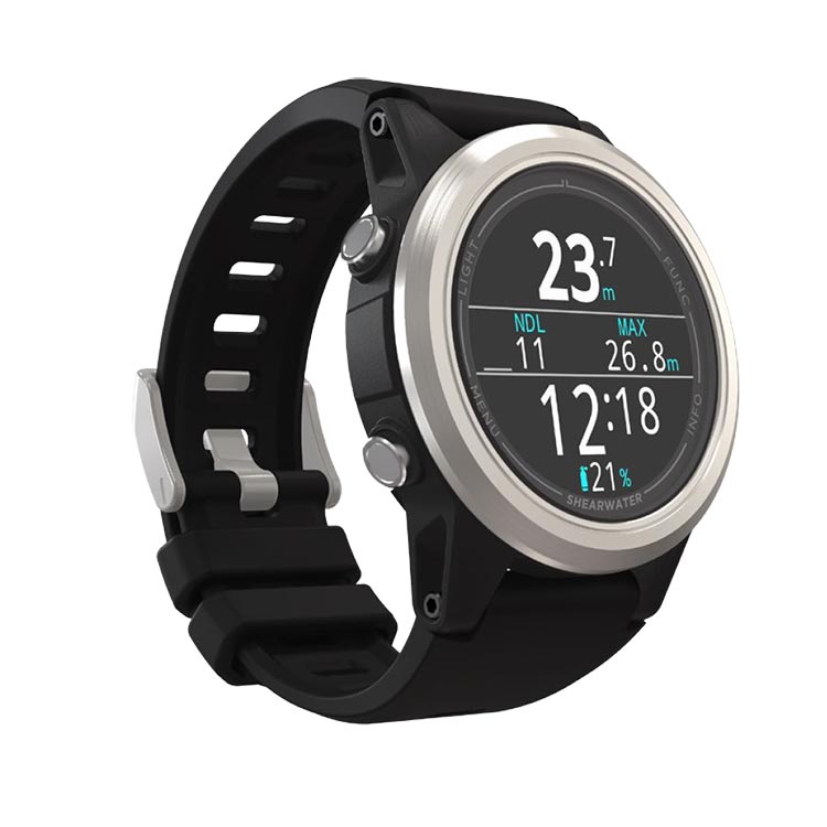 カナダで設計・製造された、水深120メートルまでのこれらのコンピューターは、ダイビングコンプライアンスのEN基準を満たしています。Shearwaterの新しいRemora™クイックコネクトバンドとウェビングストラップが付属しており、さまざまなストラップの長さと色で簡単にカスタマイズできます。