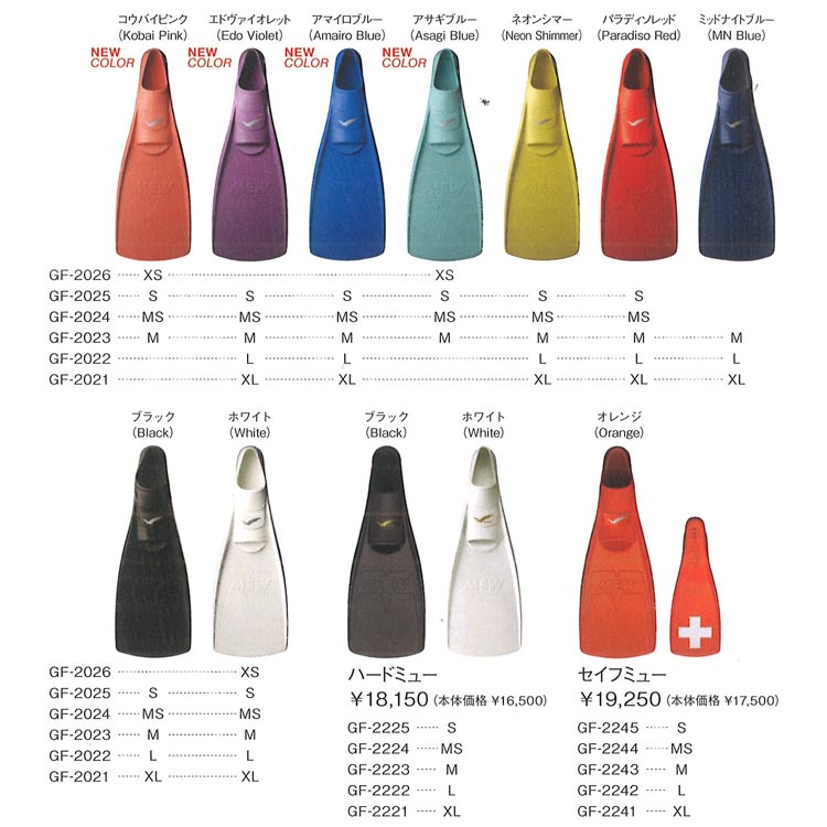 ◆Mサイズ:素足25-26cm/ブーツ24-25cm/全長550mm/フィン先幅200mm/重量750g