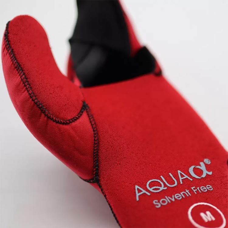 手のひら面はハンドリングしやすいように肌面を露出。さらに指先には補強素材を配置しており、SUP などのパドルスポーツにも最適です。