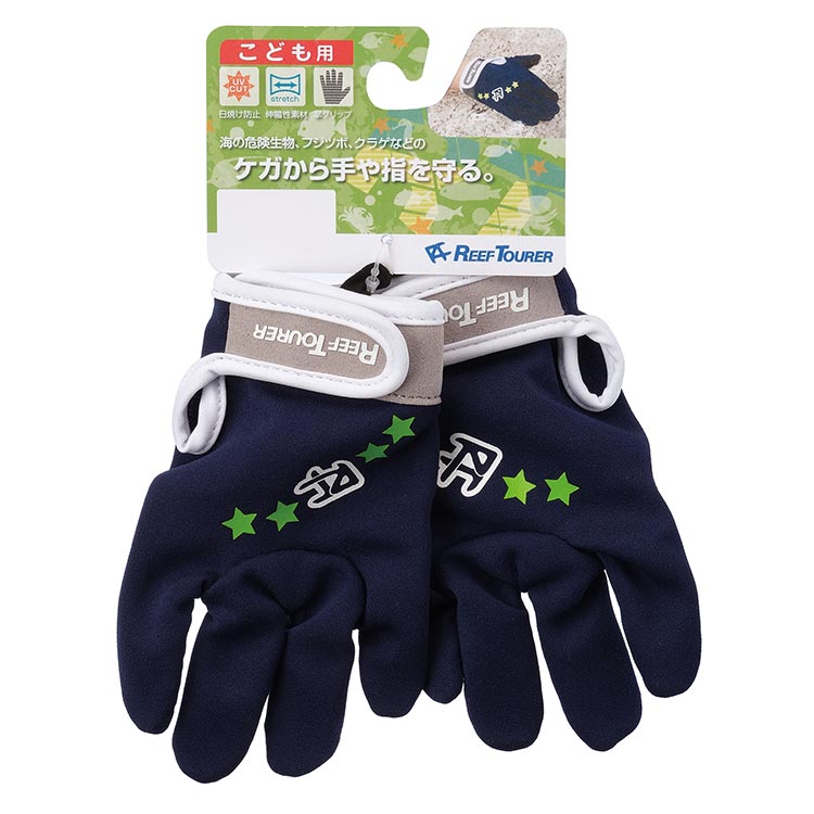 お子様の手の保護や紫外線防止の必需品。ウェットスーツと同じ生地を使用し、保温性があり、岩場でのケガを防ぎます。