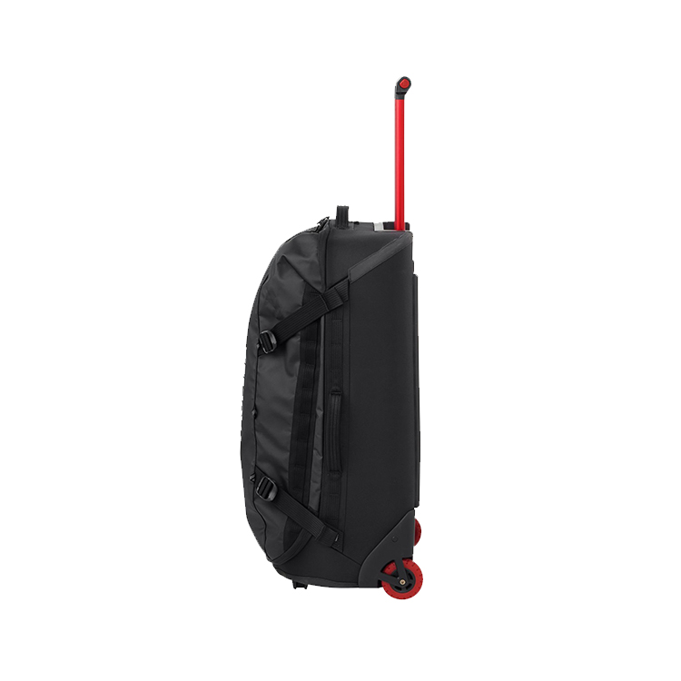 汚れや水濡れに強く、大量の荷物も持ち運びやすいホイール付きの大型ウィーラーバッグ(容量95Lのスーツケース)です。メイン素材には、耐久性の高い1000デニールのTPEファブリックラミネート(リサイクルポリエステル)を採用。背面の成型モールドパネルは、重いギアなどを収納しても型崩れしないスマートな収納性です。直径9cmの大きなホイールは、悪路でも進めます。