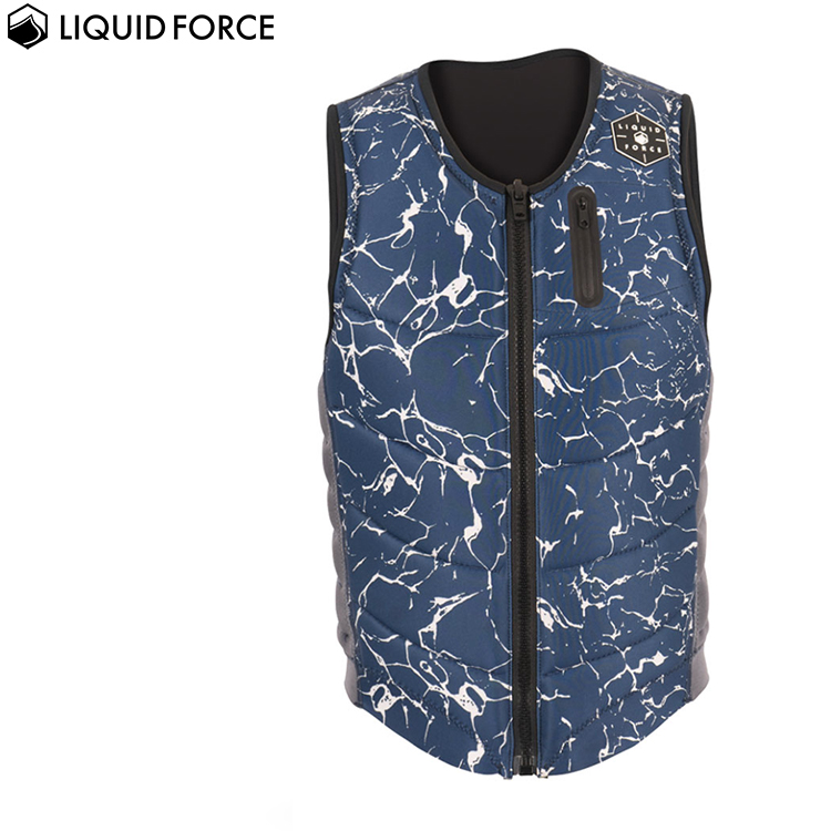 リキッドフォースの2024年モデルウエイクボード用メンズベスト(ライフジャケット)。浮力よりも動き易さを重視し薄目に作られたCOMPタイプのベスト。