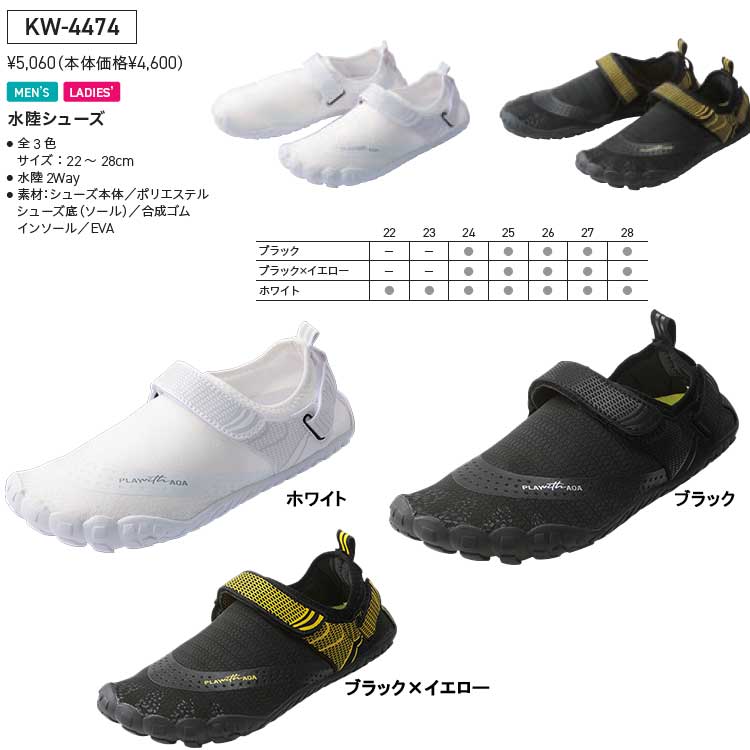 [ AQA ] 水陸シューズ KW-4474 アクアシューズ (大人用) KW4474 22cm-28cm マリンシューズ [ シュノーケリング用 ]