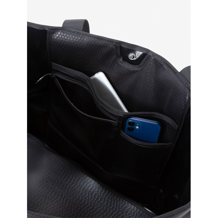 本体内部には、13インチ対応PCスリーブと小分け収納できる吊り下げ式オーガナイザーポケットを装備。荷物のない状態でも自立する構造で、スムーズに収納できます。型崩れを防ぐため、底面にパネルを設置し、荷物を多く収納しても持ち運びが安定。タウンユースからアウトドアフィールドまで幅広いシーンで活躍するアイテムです。