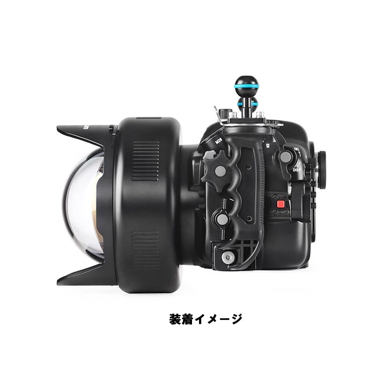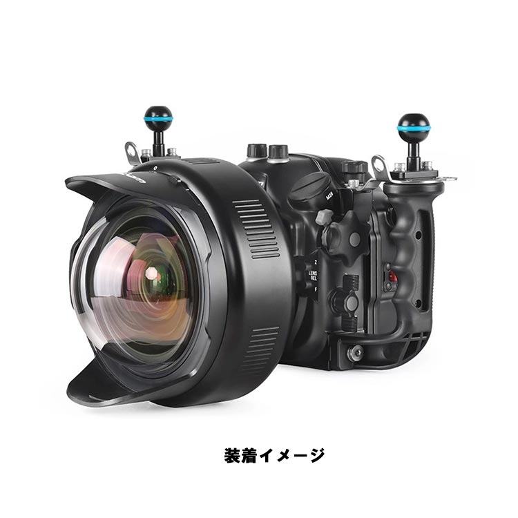 水中補正されたレンズを組み込み、170°の超広角と中央から周辺までの高画質・高コントラストを実現しました。アルミニウム製のフローカラーが組み込みとなり、マウント部分はN120とN100が交換可能です。