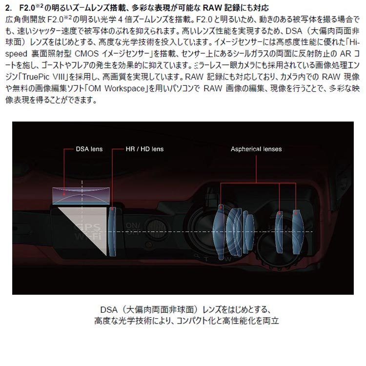 ◆F2.0※2の明るいズームレンズ搭載、多彩な表現が可能なRAW記録に対応