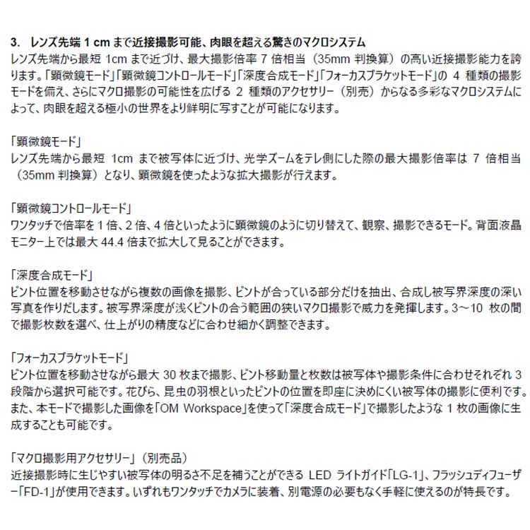 ◆レンズ先端1cmまで近接撮影可能、肉眼を超える驚きのマクロシステム