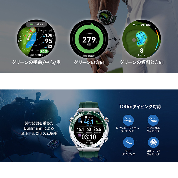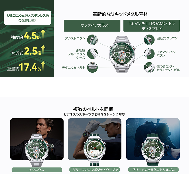 [ HUAWEI ] ファーウェイ HUAWEI WATCH Ultimate Green GPSスマートウォッチ WDS-B19 ダイブコンピューター