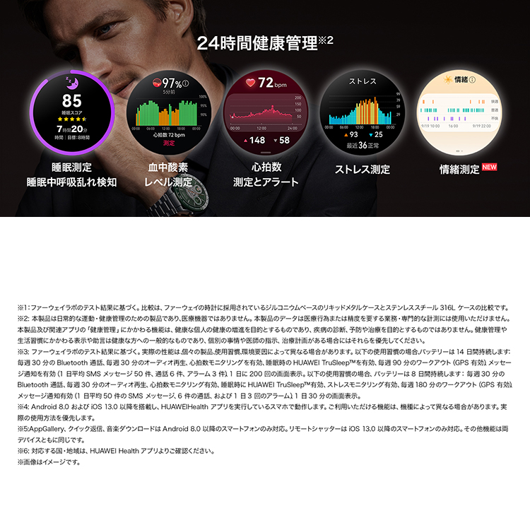 HUAWEI TruSeen 5.0により、心拍数モニタリング、血中酸素濃度の連続測定、