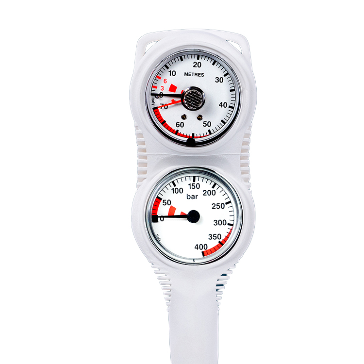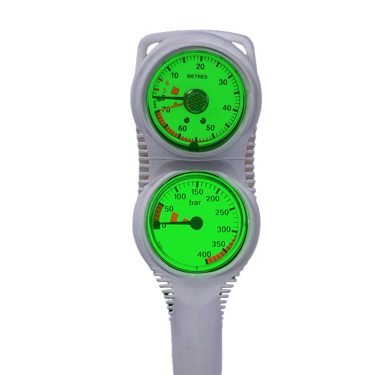 残圧計(プレッシャーゲージ)と水深計の2連ゲージ。