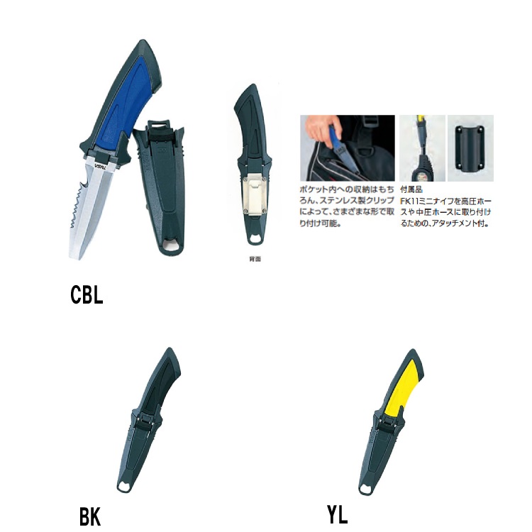 B.C.J.のポケットに 収納可能でコンパクトなダイビングナイフ