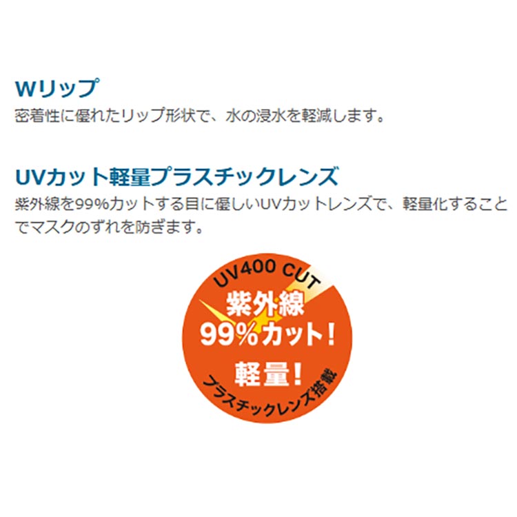 目に優しいUVカットのプラスチックレンズでお子様の目を守り、軽量化することでマスクがずれにくくなり、スノーケリングを楽しめます!【マスク】