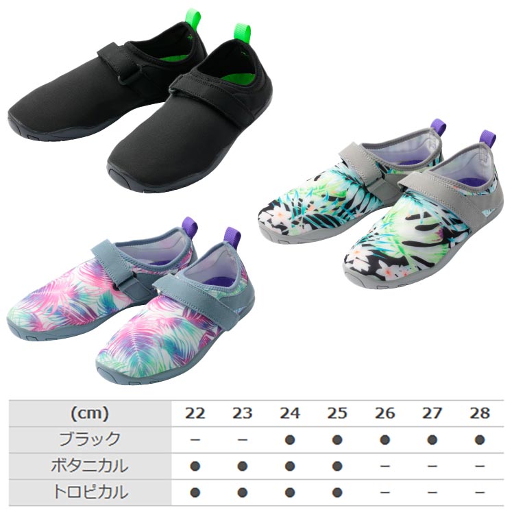 面ファスナーでしっかりホールド&水抜けのよいソール軽くて持ち運び便利なシューズで、ソールには水抜け用の穴があり快適に使用できます。