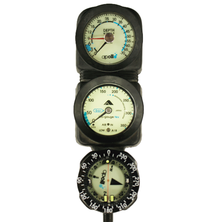 残圧低下をフラッシュ点滅で知らせてくれる安全機能搭載。機械式残圧計としては世界で唯一の機能です。また、高性能な蓄光盤面を採用しナイトダイビングにも便利です。